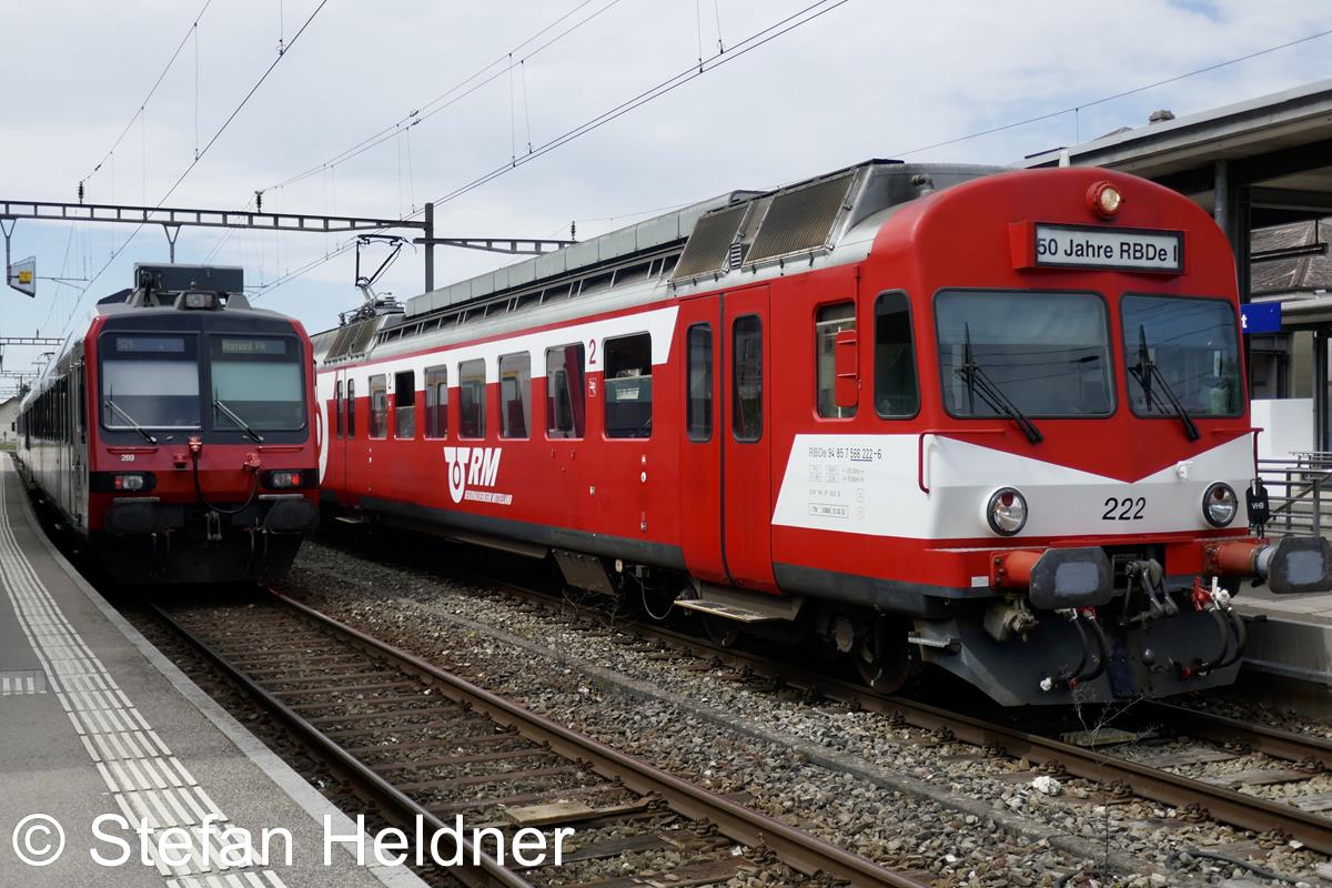 RM- und SBB-RBDe im Bahnhof Murten